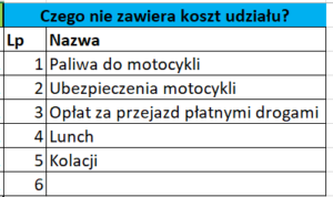 - Trasa: 9:00 – 12:00 Przejazd wyznaczoną trasą
